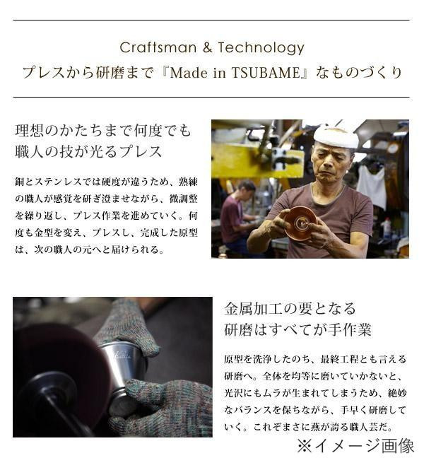 | Kalitaと燕市内の企業とのコラボレーションから生まれたメジャーカップです。研磨職人が丹精込めて磨き上げることで、洗練された輝きを放つ製品が完成しました。 |