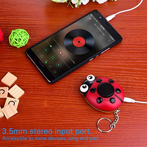 Additional Function:The Alarm also works as a speaker.The built-in magnetic speaker makes it crystal clear articulate,with 3.5 mm audio input interface which could be connected to more equipments.Plug and it plays,take out and stops.This cute ladybug is tiny and is a perfect attachment to your handbag, belt or school bag. Such a small fashion item will not draw the attention of attackers or intruders.