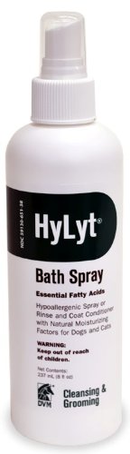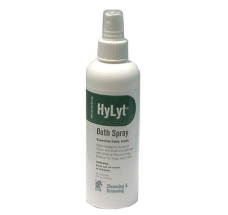 Studio : DMV Publisher : DMV Binding : Misc. Product Description HyLyt Bath Spray is a gentle, hypoallergenic formulation to moisturize skin following or between baths. Contains natural mositurizing factors and essential fatty acids for conditioning of hair coat and replenishment of the epidermal barrier. after bath rinse for improved luster and sheen of hair coat. Aids in control of flaking and scaling by normalizing keratin 0