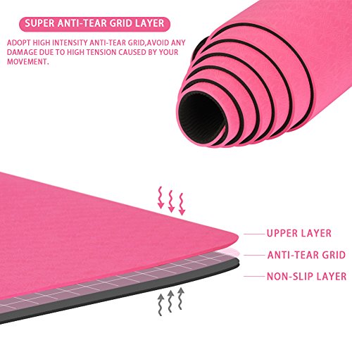 - Lightweight & durable:Yoga Mat is 72 inches long, 24 inches wide and 1/4 inch thickness.With the Creative Triple-layer Design that adds Anti-tear Grids to the Middle Layer, Our Yoga Mats are more Durable and Long-life Used.