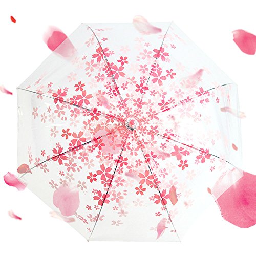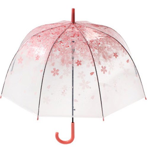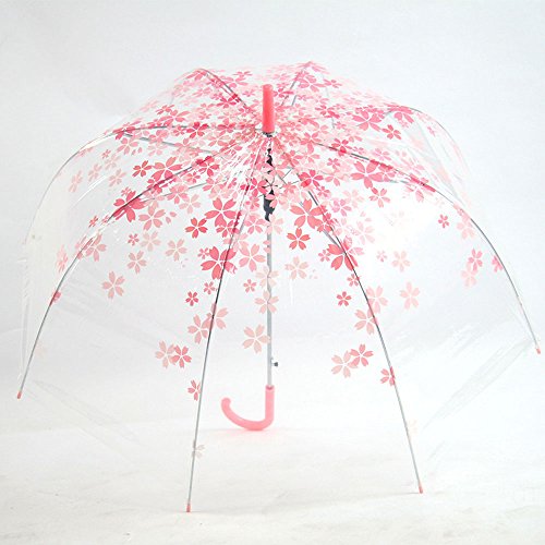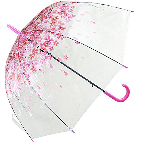 -. Feature : Romantic Floral Print Umbrella Design / Cute Bubble Dome Shape Umbrella / Auto Open & Matching Color Umbrella Hook Handle / Hook Handle, Clear Transparent, cherry blossoms, Eiffel Tower Pattern