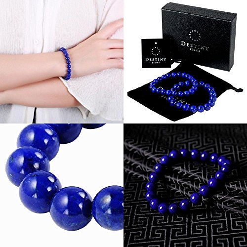 DESTINY STONE 라피스라즈리 파워 스톤 팔찌 【AAAAA급】 천연석 【 행운 연애운 부적 】 (A-5.손목 주위18cm 8mm옥)