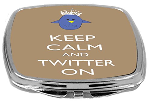 Rikki Knight Compact Mirror, Keep Calm and Twitter On Brown