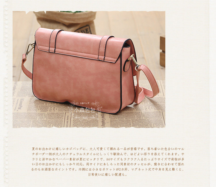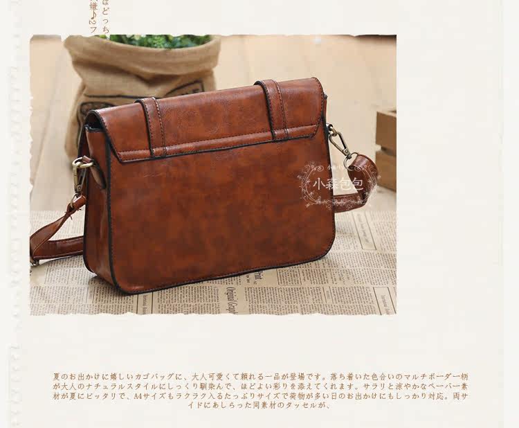 型号 森095面料 PU皮重量 0.6KG内衬 涤纶布料配件 一根肩带 可调节款式 斜跨 单肩 尺寸 底长27CM 高19CM 厚7CM肩带总长120CM 可调节容量 可放普通三折雨伞 IPADMINI 手机 纸巾 化妆小物 长款钱包 不可放A4 和IPAD结构 一个拉链壁袋 两个小袋
