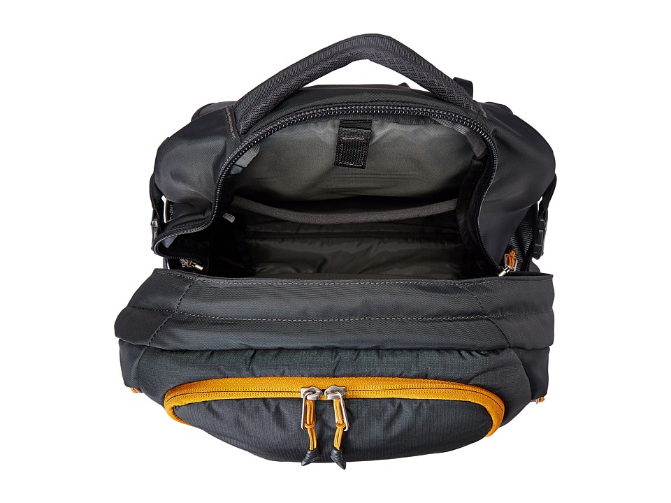 Description * Made with durable, resilient materials and ample pockets for storage, the Big Shot by The North Facereg; is a perfect bullseye! * FlexVenttrade; injection-molded shoulder straps with a top layer of Atilon foam for added support. * Comfortable, padded airmesh back panel with Spine Channel and PE sheet for extra back support. * Front daisy chain with Hypalonreg; reinforcement. * Padded, winged, stowable hipbelt. * BackSaver bottom panel with compression. BackSaver technology is an angled bottom panel that works with the action of gravity to shift the weight of the pack's cargo closer to the user's back creating a comfortable fit, especially with carrying heavier loads. * Hydration sleeve and hose port. * Organizer in the main pocket. * Front vertical stash pockets with water-resistant zippers. * Mesh side water bottle pockets. * Side compression straps. * Safe-T whistle on sternum strap. * Specifications:#8226;Volume: 33 L.#8226;Materials: 420D nylon and 1680D ballistics nylon. * Imported. Measurements: * Bottom Width: 13 in * Middle Width: 14 in * Top Width: 11 in * Depth: 5 1frasl;2 in * Height: 21 in * Strap Length: 36 in * Strap Drop: 14 1frasl;2 in * Handle Length: 7 1frasl;2 in * Handle Drop: 1 1frasl;2 in * Weight: 2 lbs 12.8 oz * This product may have a manufacturer's warranty. Please visit the manufacturer's website or contact us at warranty@support.zappos.com for full manufacturer warranty details. |