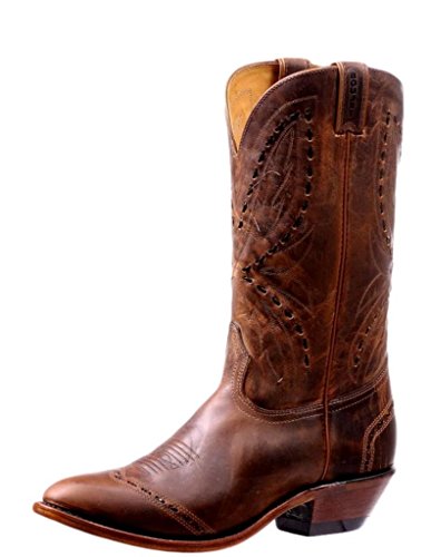 Studio : Boulet Publisher : Boulet Binding : Apparel Product Description Mens Boulet Western Boots: Mens Western Cowboy Boots. These men's cowboy boots from Boulet are carefully handcrafted with top quality leather for durability and a perfect fit. Featuring a leather sole, a cowboy heel, a medium cowboy toe and a fully leather lined interior. These pull on boots have a 13 inch shaft with lacing details and easy on pull straps. You'll get added comfort from the cork pad that is between the insole and outsole that molds to the foot for a better fit and insulation. Boulet Boots run a half size large, order a half size smaller than normal. 7211 0