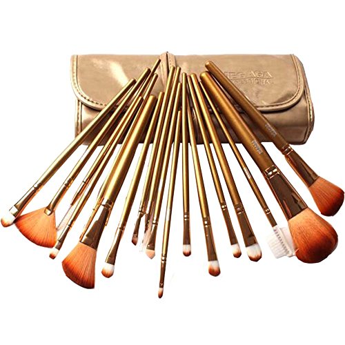 18Pcs Beginner Makeup Brush Set Fiber Hair Makeup Brushes Makeup Tools with Pouch,Golden
