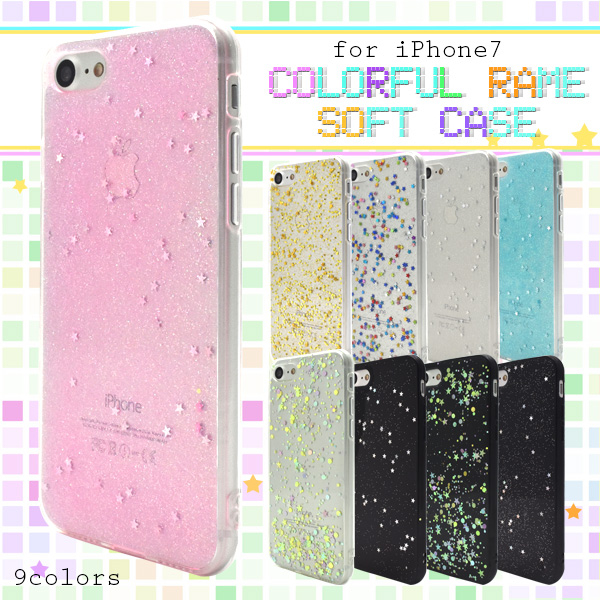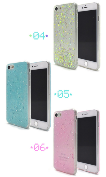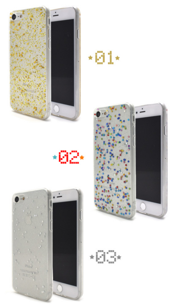 色鮮やかなラメに星型のラメのアクセントが可愛いキラキラのケースです。