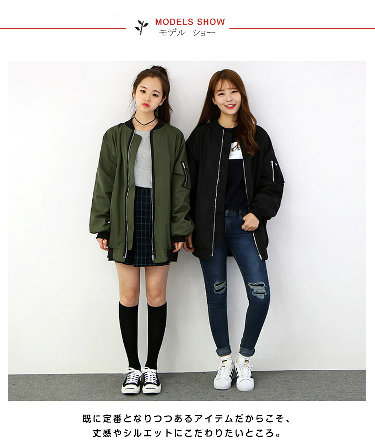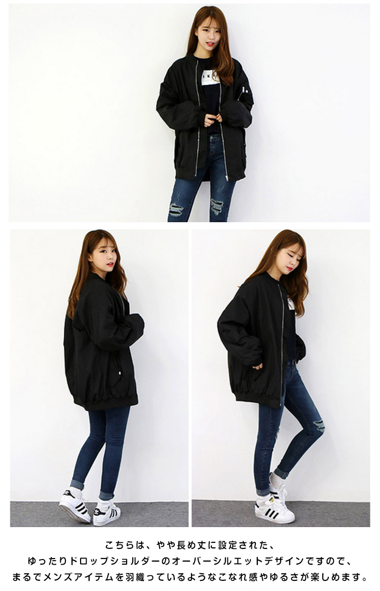 | 今シーズンも引き続き大人気!MA-1ブルゾンが、新色展開で再登場です!既に定番となりつつあるアイテムだからこそ、丈感やシルエットにこだわりたいところ。こちらは、やや長め丈に設定された、ゆったりドロップショルダーのオーバーシルエットデザインですので、まるでメンズアイテムを羽織っているようなこなれ感やゆるさが楽しめます。パンツでボーイッシュに、スカートでちょっぴり女性らしく。羽織るだけで、旬スタイルがこの1枚で決まります☆ | |