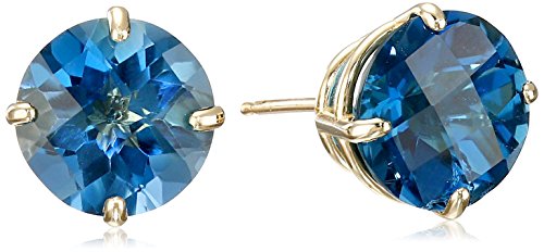 Stud earrings feature 8mm London Blue Topaz center stones.