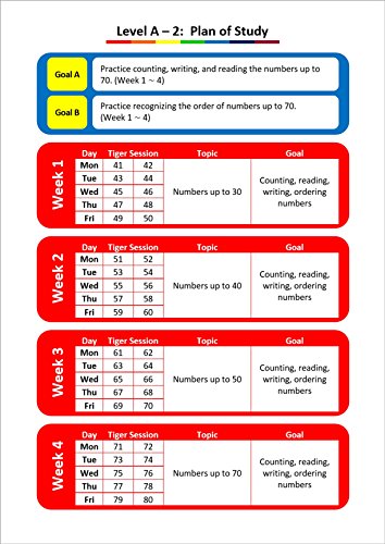 Goals of Level A-2 1. Practice counting, writing, and reading the numbers up to 70. (Week 1 ~ 4) 2. Practice recognizing the order of numbers up to 70. (Week 1 ~ 4)
