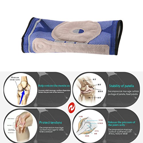 -. Feature : ABSORBENT, BREATHABLE, SKIN-FRIENDLY CORMFORT: Using three-dimensional wearing, fiber cross-section coverd space, it can instantly absorb and evaporate large amounts of water, circular breathing, in order to protect the movement of the knee keep cool and comfortable. / 3D THREE-DIMENSIONAL STRUCTURE OF WOVEN: High-precision 3D cutting technology of knitting, ergonomic, 360-degree body curve perfect fit knee, wearing more comefortable. Contoured Fit allows for maximum comfort and prevents slippage. / INJURY PREVENTION: Soft neoprene material with knee buffer washer keeps your knee warm, lubricating your joints. Popliteal fossa special weaving technology on both sides of the rib support preventing injuries. / RECOVERY REHABILITATION: Suitable for Knee pain and discomfort, mild strain prain, knee fatigue, patellar instability, fitness and great for sports. Workout with a peace of mind. / SUPERIOR DURABILITY: Premium stitching and construction. Wonderful companion when you play football, basketball, mountaineering, Breathable and sweat absorb. The only knee sleeve you will ever need.