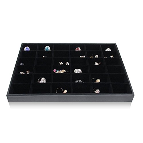 BOCAR Jewelry 36 Compartment Display Black Showcase Bracelet Organizer Ring Holder (BP-36G)