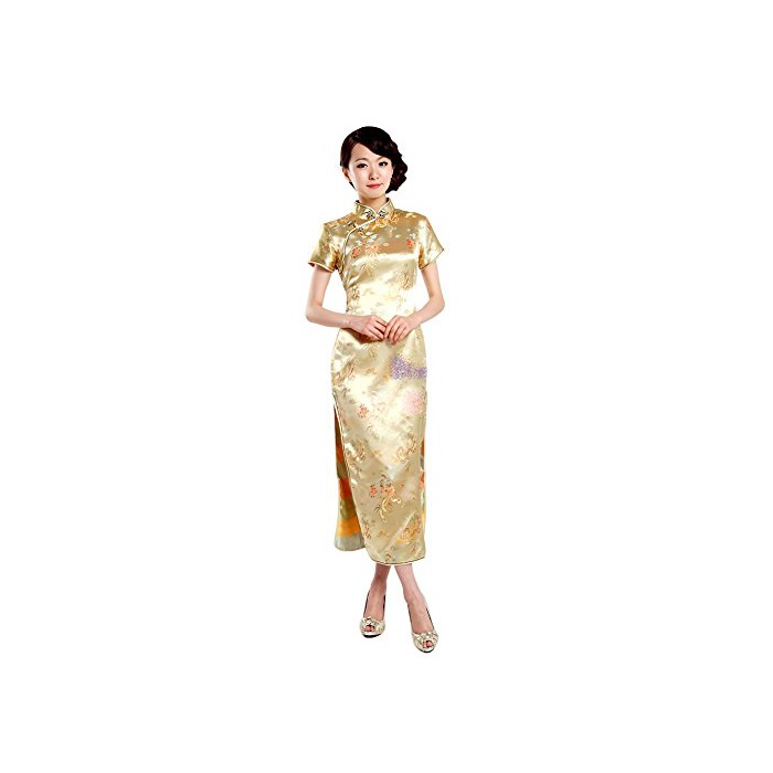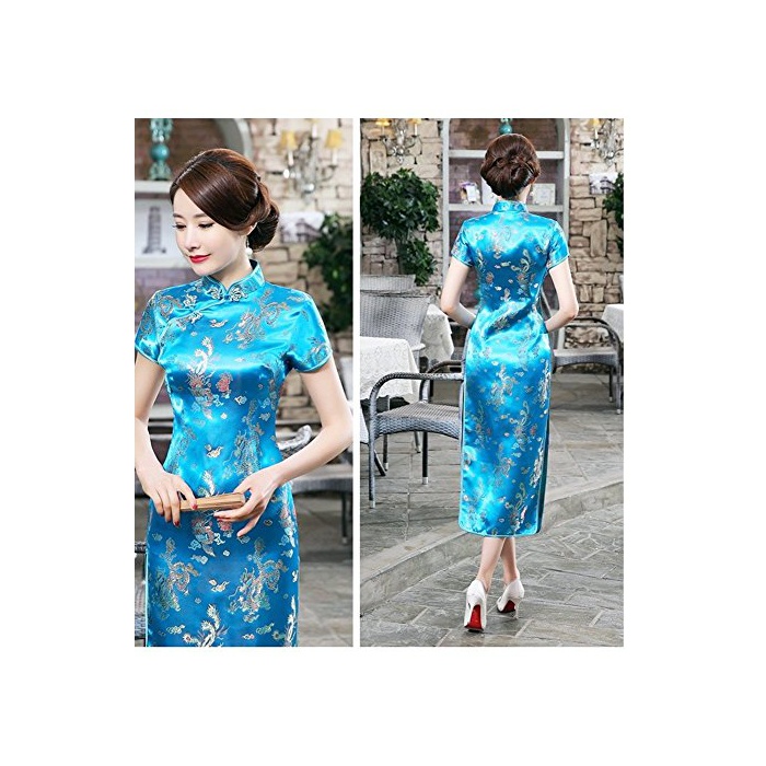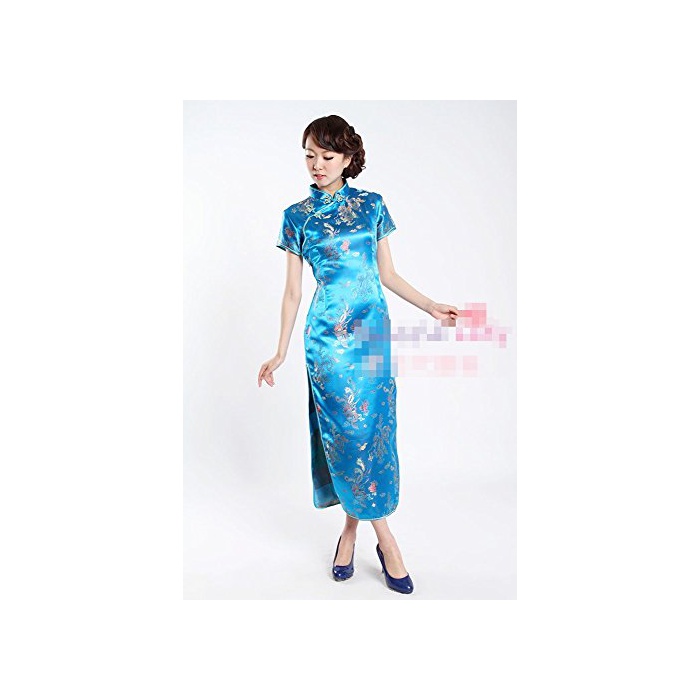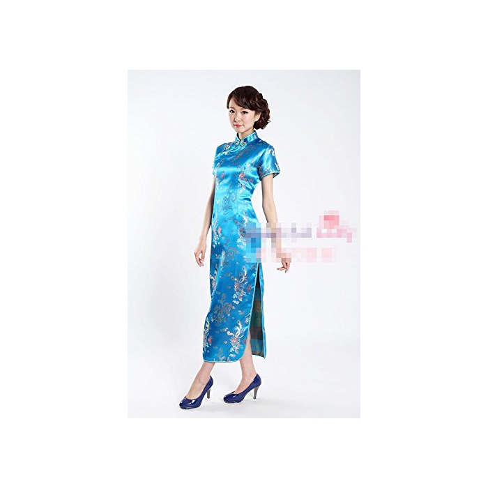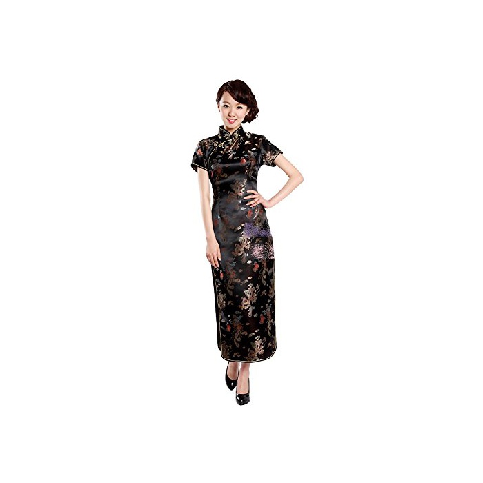Black Omen (블랙 오멘) 광택 있음 용봉 봉자수 반소매 컬러 맥시장 롱 차이나 드레스(레이디스,여성용)원피스 슬릿 원피 드레스 op021