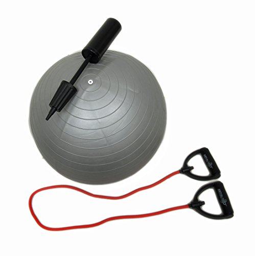 This Gym in a Box starter set contains a 21 inch diameter exercise ball and a resistance band with extra soft handles. Use the ball for added flexibility and balance, and the band to help isolate your muscles more effectively. The set comes with an air pump to inflate the ball. It's a great starter set for beginners and makes a great gift.