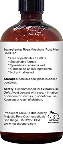 Majestic Pure Rosehip Oil for Face, Nails, Hair and Skin, 100% Pure & Natural, Cold Pressed Premium Rose Hip Seed Oil, 4 oz