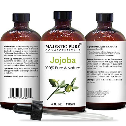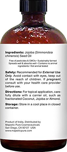 Majestic Pure Jojoba Oil for Hair, Skin or As Carrier Oil, 4 fl. oz.