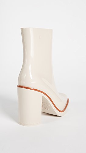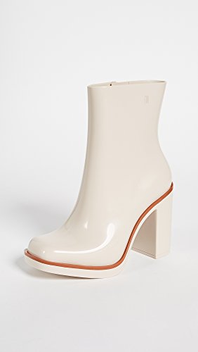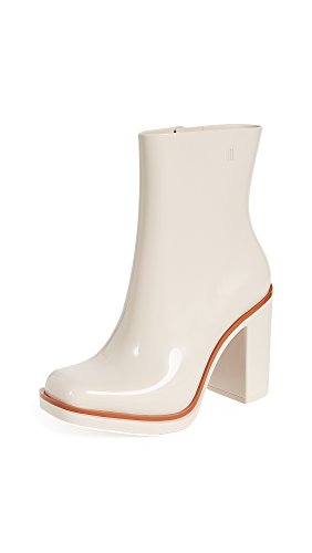 Product DescriptionA chunky heel adds a sturdy lift to these glossy rubber Melissa rain booties. A Velcro strap secures the shaft. Padded insole. Rubber sole.0