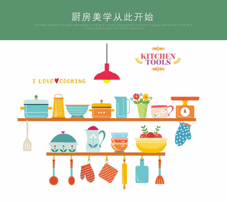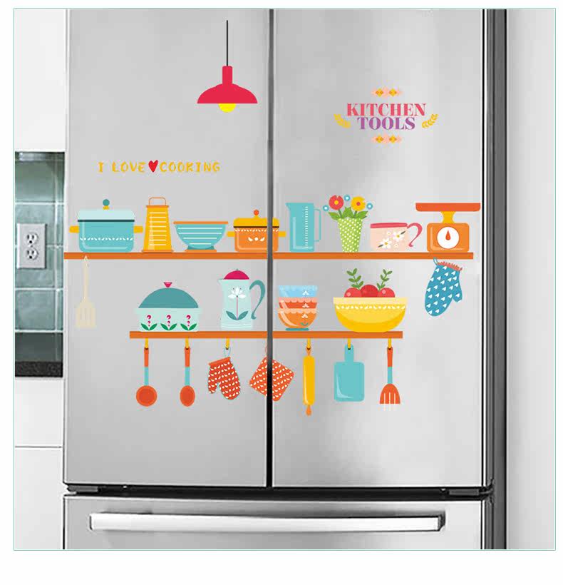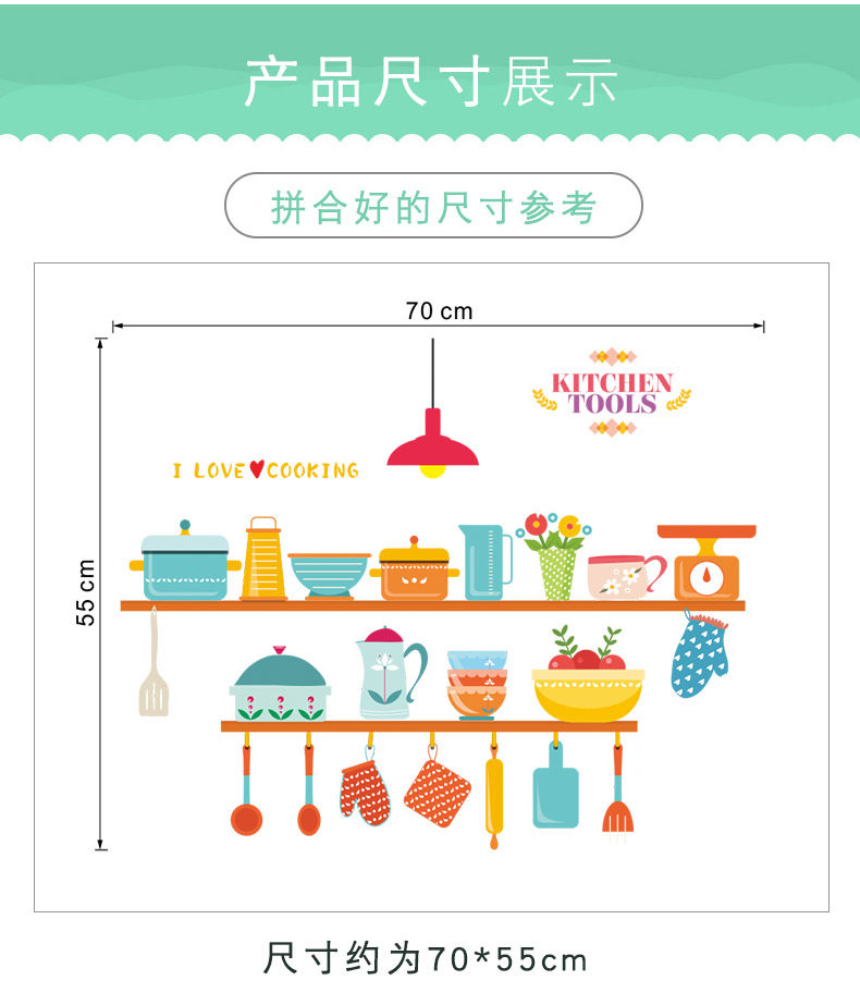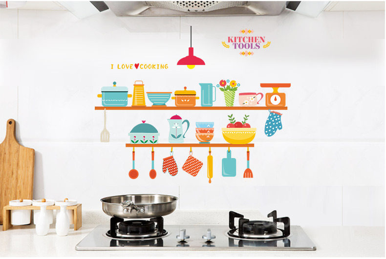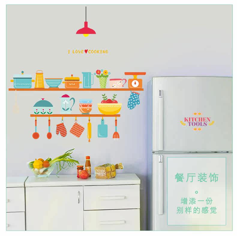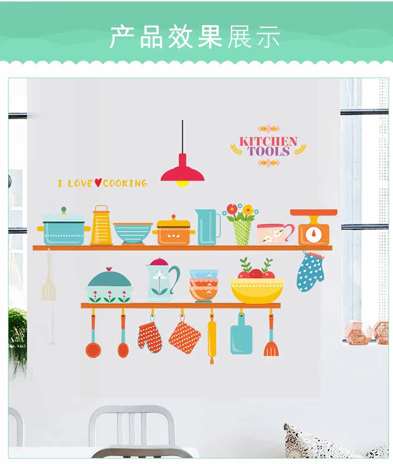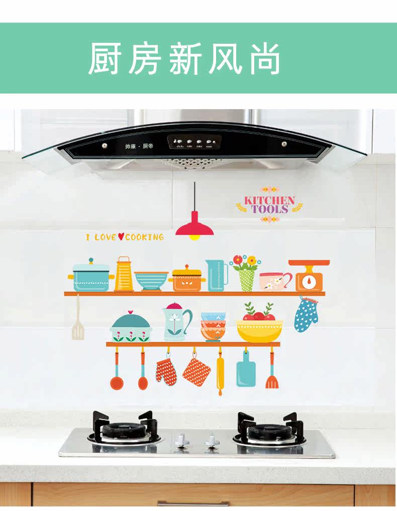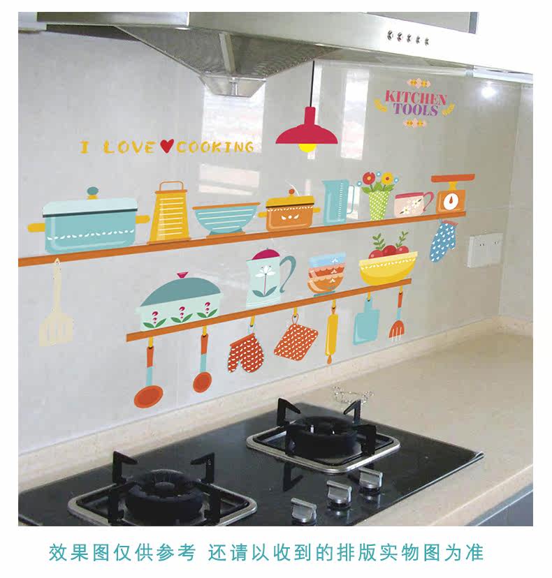 可爱趣味厨房灶台背景墙贴餐厅装饰防水可移除瓷砖贴自粘装饰贴纸