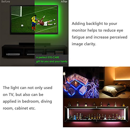 - ENHANCE VIEWING EXPERIENCE: Decorate your workspace with this RGB LEDs strip light to set the mood as you like and also illuminate your hardware. Turning on the lights around the tv monitor equals to coloring your entertainment moment with your lovely family.