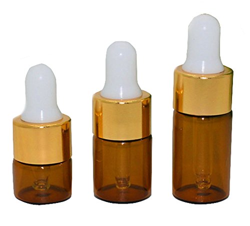 50Pcs Mini 3ML Empty Refillable Amber Glass Essential Oil Bottles Perfume Cosmetic Liquid Aromatherapy Lotion Sample Storage Containers Vials Jars with Eye...