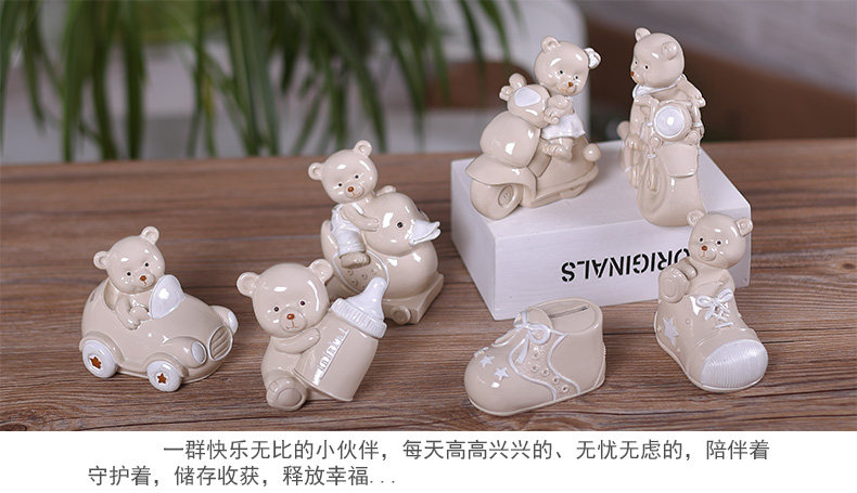 可爱小熊储钱罐创意汽车奶瓶存钱罐卡通摆件儿童房间装饰品摆设