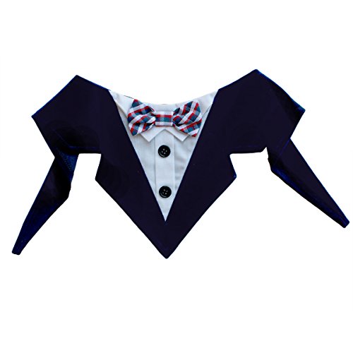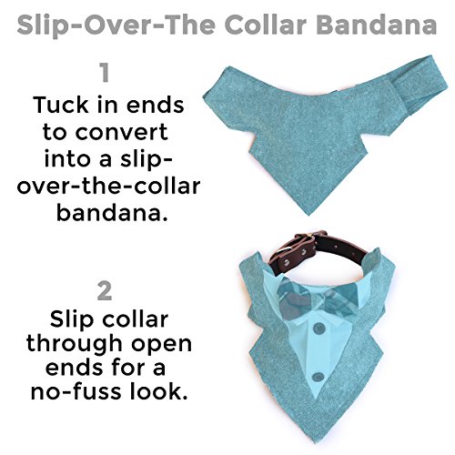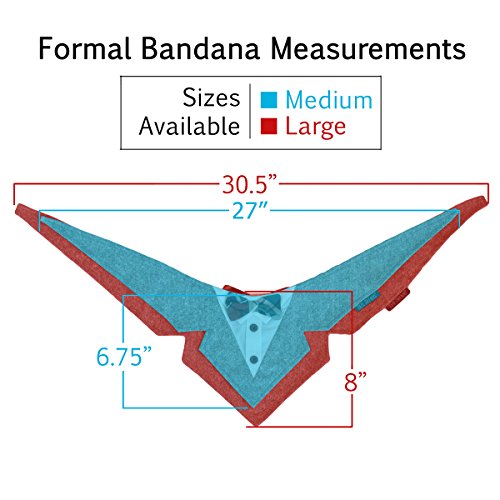 Perfect item for that special event that includes your furry friend! Scoop neck formal bandana features collar with neck or bow tie design, along with decorative buttons. Easy to tie around neck. This product fits most small to medium sized dogs. Medium Size fits 10"-15" neck line. Large Size fits 16"-24" neck line.Feature
