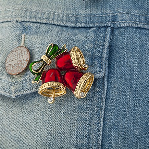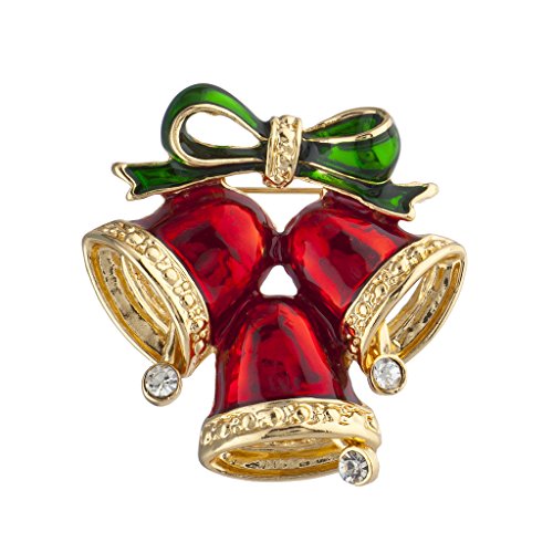 -. Title : Lux Accessories Gold Tone Red Christmas Holiday Jingle Bells Bow Brooch Pin