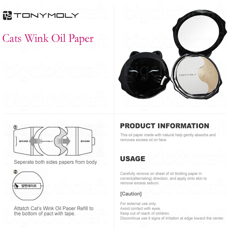 This is Brand New Original Tony Moly Cosmetics Free gift is sample pouch. (Brand of pouch may be replaced by other Famous Brand) ========================================================= [Tony Moly] Cats Wink Oil Paper In case, there are 50 Sheet of Oil paper(Blotting Paper) This oil paper made with natural help gently absorbs and removes excess oil on face. Carefully remove on sheet of oil blotting paper in correct(alternating) direction, and apply onto skin to remove excess sebum. 1. Seperate both sides papers from body. 2. Attatch Cat's Wink Oil Paper Refill to the bottom of pact with tape.