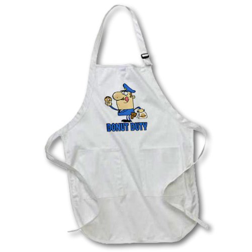 3dRose apr_118656_1 Funny Cartoon Police Officer on Donut Duty-Full Length Apron with Pockets, 22 by 30-Inch, White