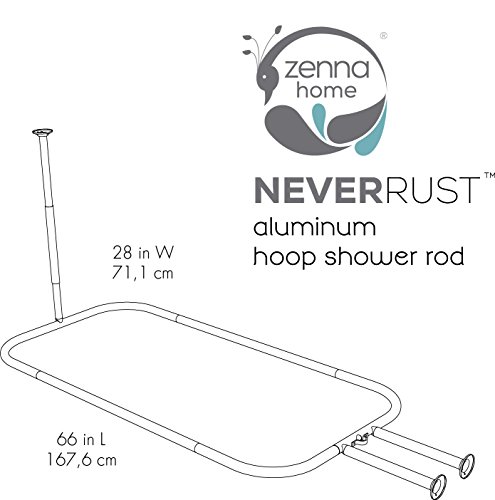 Zenna Home 34941WW, NeverRust Aluminum Hoop Shower Curtain Rod for Claw Foot Tubs, White