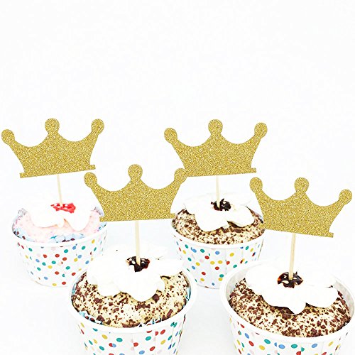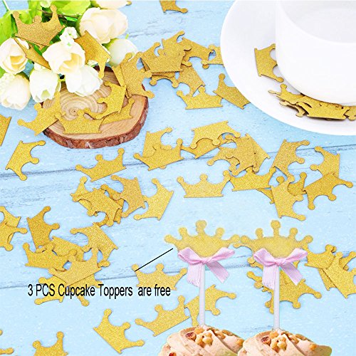 Toppers are double sided: gold glitter. Crown Confetti Color:Gold glittery;Double gold color