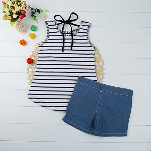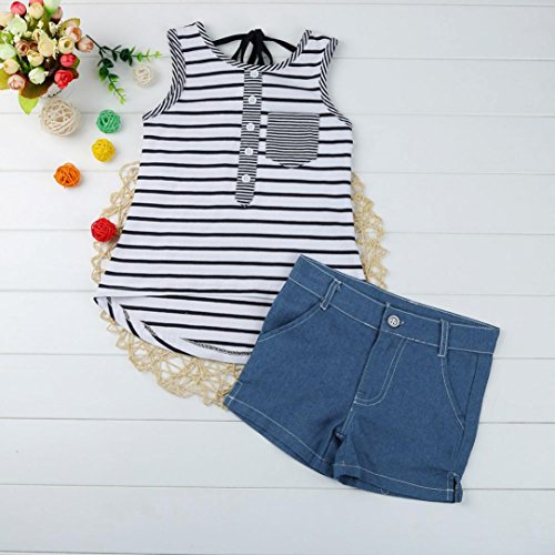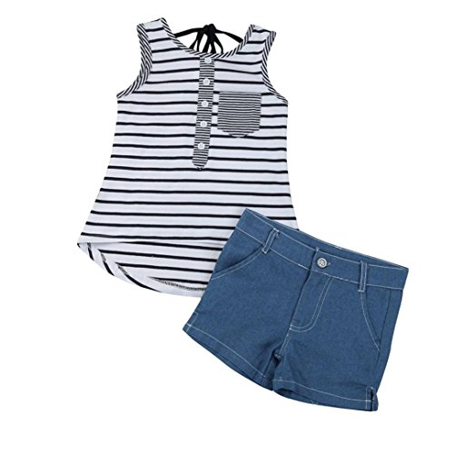 -. Binding : Apparel -. Brand : Toraway -. Color : White -. Department : baby-girls -. Feature : Package include:1PC Vest+1PC Pants / Pattern Type:Stripe / Decoration:Pockets / NOTE: Please comparing the detail sizes with your similar clothing before you buy. We recommend that you can choose a bigger size / We are Asian Size , usually it run smaller 1 or 2 sizes than European and American,Please check the "Size Details" product descripton shows carefully -. ProductGroup : Apparel -. ProductTypeName : PANTS -. Size : 3T -. Title : 2PCS/ Set Toraway Toddler Kid Baby Girl Tank Vest T-shirt + Jeans Short Pants Clothes Outfit Set