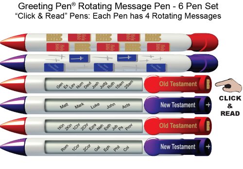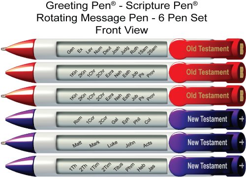 Greeting Pen "Books of the Bible" Scripture Pens, Scripture Verses with Rotating Messages, 6 Pen Set (36024)