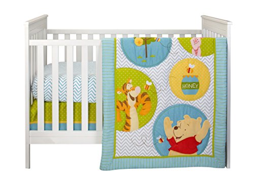 -. Feature : Pooh's Play Day 4pc Crib Set includes: comforter, dust ruffle, sheet, and Pooh wall art / Fabric: 55% Cotton/45% Polyester. Wall art: MDF / Coordinates with a full line of Pooh's Play Day nursery bedding and decor