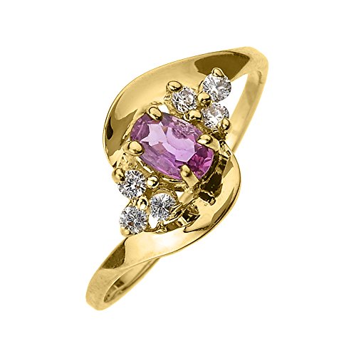 -. Title : Solid 10k Yellow Gold Beautiful Diamond and Pink Sapphire Proposal and Birthstone Ring