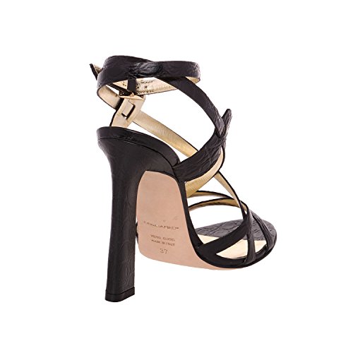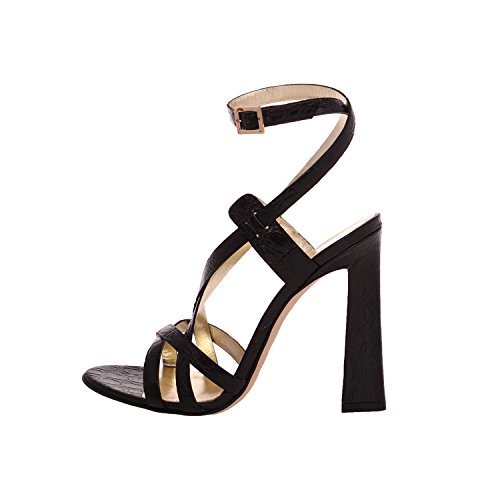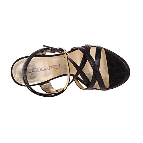 (DSQUARED2)/Women's/Sandals/DIRECT FROM USA/DSQUARED2 Women Black Crocodile Embossed Leather Slim High Heel Sandals Shoes