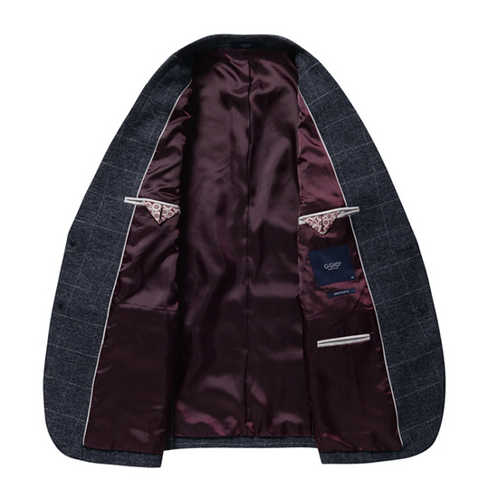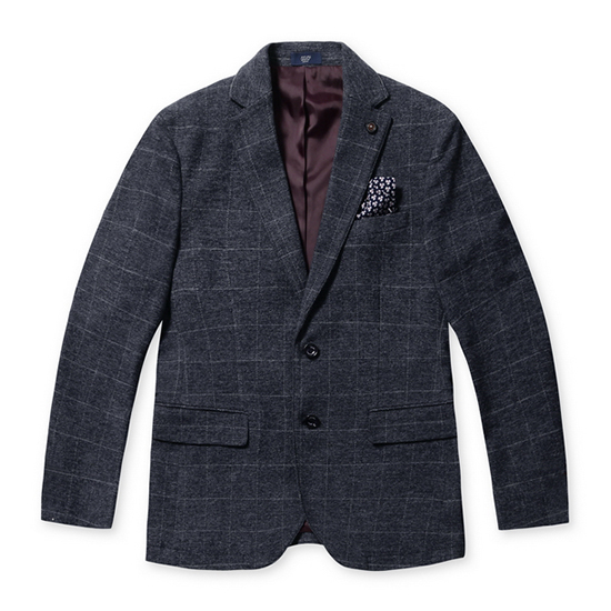 - 그리드 패턴 텍스쳐 디자인의 모던한 남성 자켓.