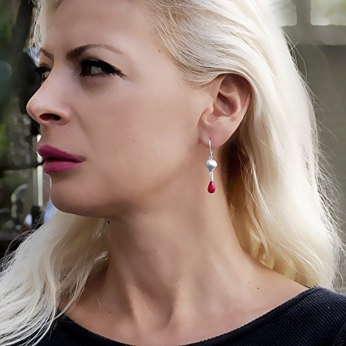 -. Title : 2" Long Silver Red / Pink Faceted Teardrop Jade Beads Long Hanging Dangle Drop Earrings 925 Sterling Silver French Hook Earwires Modern Romantic Jewelry