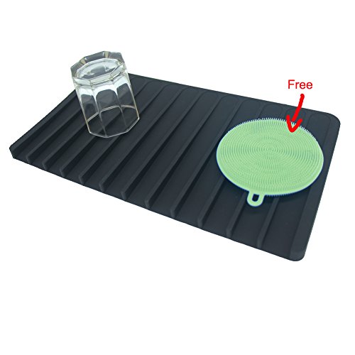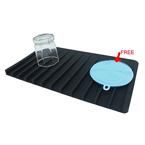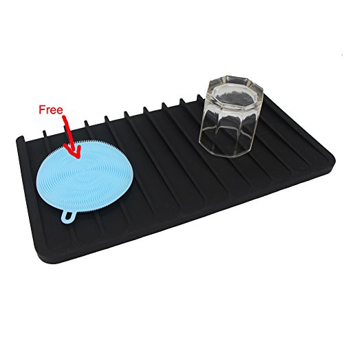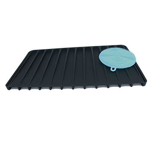 ANILAFORYOU Food-grade Self Draining Silicone Drying Mat Dishwashing Dish Brush Sponge Towel Scrubber For Kitchen (Black+One Dish Brush)