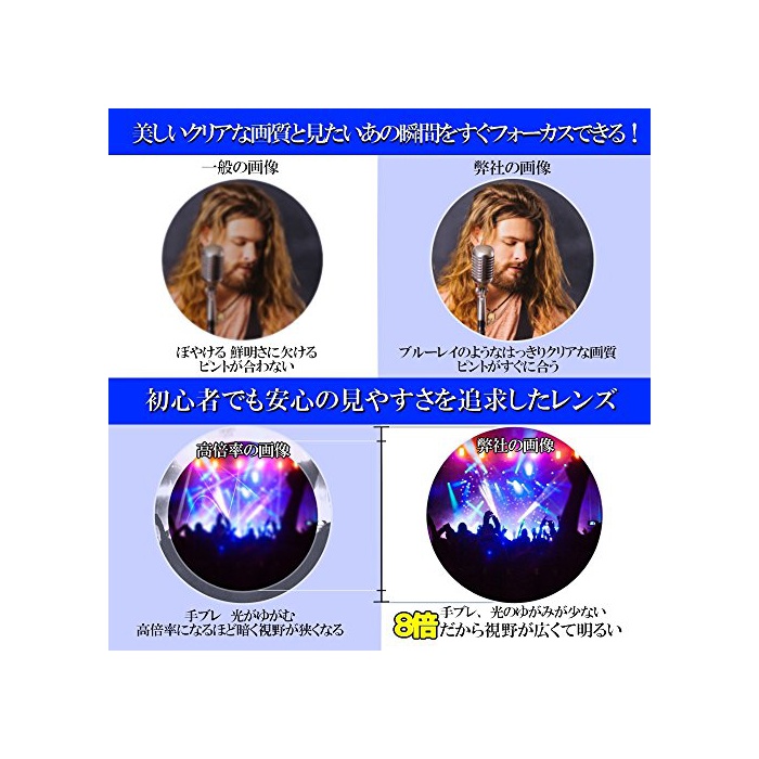 【콘서트에 최적】품질의 높은 프리즘을 채용하여 거품이나 이물질이 적고, 빛의 투과 이윤이 좋은 렌즈입니다.어두운 스테이지에서도 밝게 분명히 보입니다.라이트의 일그러짐이 적게 스테이지의 박력과 현장감을 떨어진 장소에서에서도 체감에 옵니다.