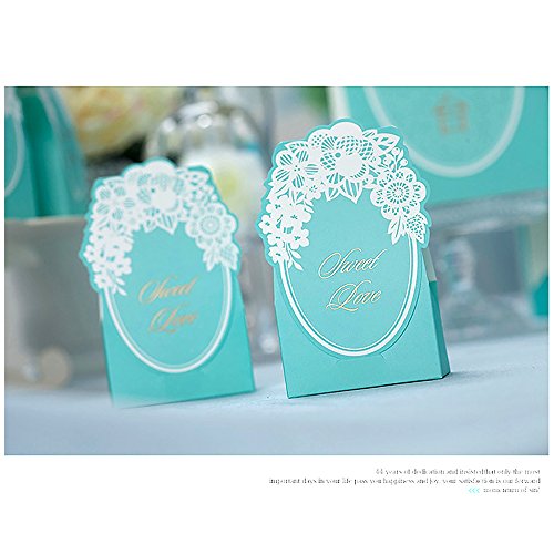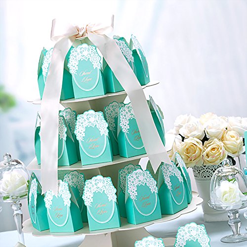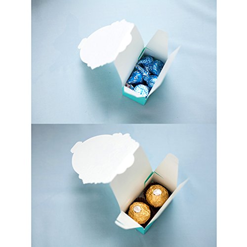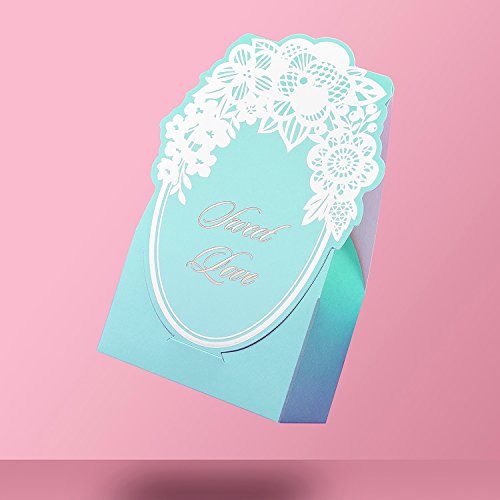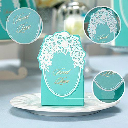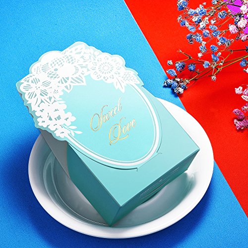 WeddingBob 5Pcs Bridal Shower Wedding Party Favour Candy Gift Box Bags Foil Stamping Embossing Flora Design Tiffany Blue