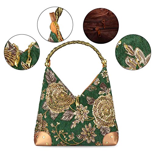 <2> This is 2 layer flower embroidered boho handbag with both sides fully sequins beads flower for decoration,which give you a sense of retro and elegant. It is perfect for everyday use, and also a great gift to your friends.