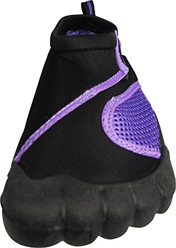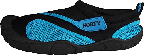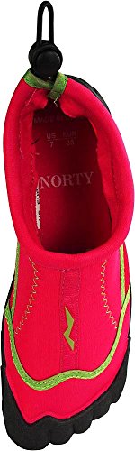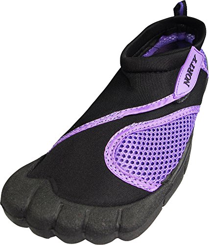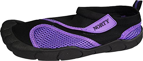 Better Traction No Matter Where You Go Beaches, rivers and even pools can present challenges for your feet - from slippery, moss-covered rocks to broken glass and sizzling concrete. Norty Womens Aqua Water Shoes keep a low profile while providing excellent traction and maximum protection from unexpected underwater hazards. Designed With Water Sports In Mind If you love to be active in the water, whether swimming, surfing, snorkeling or whitewater rafting and kayaking, you'll appreciate how the Norty Water Socks hug your feet. Breathable mesh allows water and air to flow freely - which helps the shoes dry fast. Stretchable neoprene uppers provide a protective layer but are easy to slip on and off even when wet. Cinches Tight With A Drawstring Cord or Strong Fabric Closure You won't have to worry about your aqua socks flying off your feet at inconvenient times when you're navigating fast-moving water or running along the beach. The drawstring cord style cinches tight and provides a secure fit or the strong fabric closure style keeps your shoes in place no matter what the circumstance. No Question Asked 30-Day Guarantee No need to guess - take a full 30 days to ensure they fit. If they don't meet your expectations, simply return them unworn for a no questions asked refund. Order Your New Norty Womens Aqua Sock Wave Water Shoes Today and Get Out and Enjoy the Water 38863 0 |