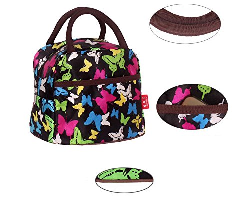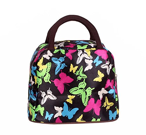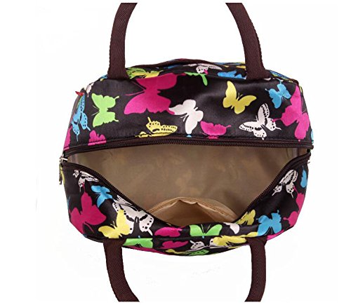 Reusable Waterproof Insulated Lunch Bag Holder Travel School Picnic Tote Bag Travel Zipper Organizer Box Container for Kids and Adults (Butterfly pattern style)