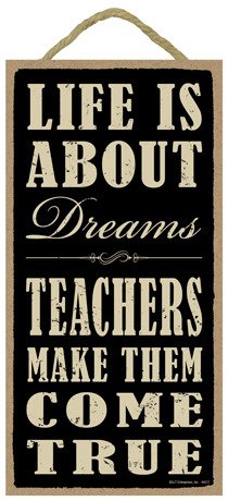 (SJT94217) Life is about dreams. Teachers make them come true. 5" x 10" wood sign plaque