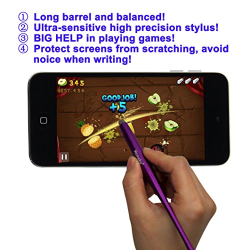 5. SLIM LONG & BALANCED IN HAND - BIG HELP in playing games. No more frustration in big fingers, beautiful long nails,fingerprint,oil,smudges,mess, or damage leaving on your pricey screen.