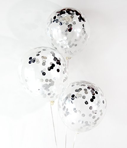 PACKAGE FEATURES: -All in Standard Size : 12 inches / 30cm -This product will be shipped flat. -Confetti is set inside the clear balloons, ready to inflate 6 Confetti filled clear balloons SET UP TIPS FOR CONFETTI BALLOONS Air inflation and low humidity makes confetti stick better to the balloons, when filled with helium, confetti stays at the bottom of the balloon in most of cases, but you can try rub outside the balloon with your hand, or rub on the carpet to create the static. Depending on the environment and what you use to inflate, result might be different on how the confetti sticks.