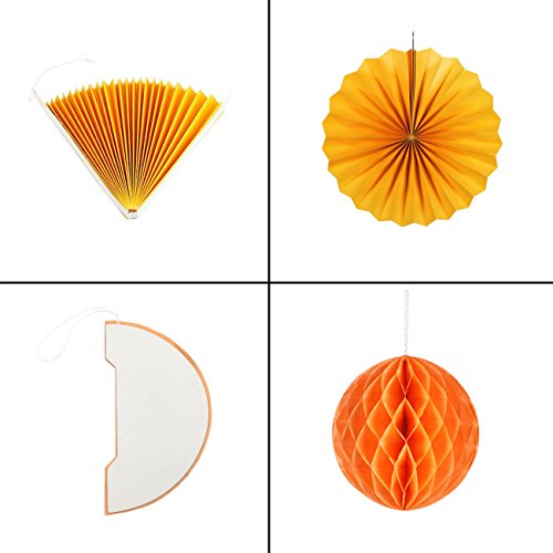 - EASY TO USE-- unfold the fans or honeycomb balls, attach the two backsides with double sided tape to create a fan or ball. Repeat steps to make several ornaments.