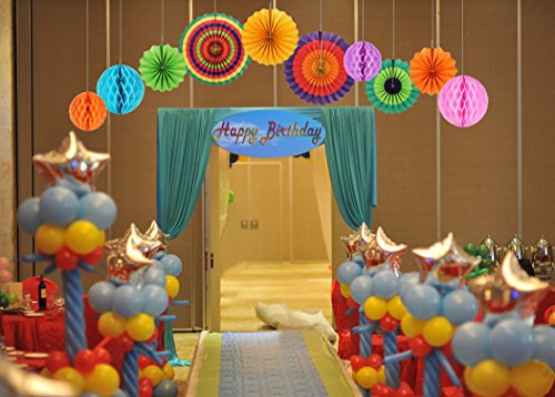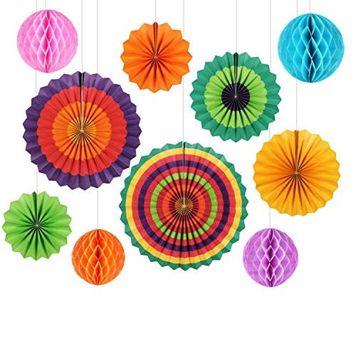 Party Decoration GoFriend 10Pcs Colorful Fiesta Paper Fans Tissue Paper Honeycomb Balls Hanging Decoration for Birthday Wedding Carnival Baby Shower Home Party Supplies Favors Rainbow Color